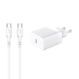 Praktisk USB-vægoplader med PD og PPS hurtigopladningsteknologi plus 1m kabel USB-C til USB-C, til smartphones og tablets.