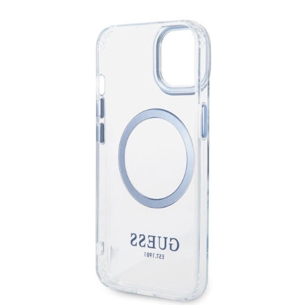 Guess Metal Outline MagSafe-hylster til iPhone 14 Plus - blå .