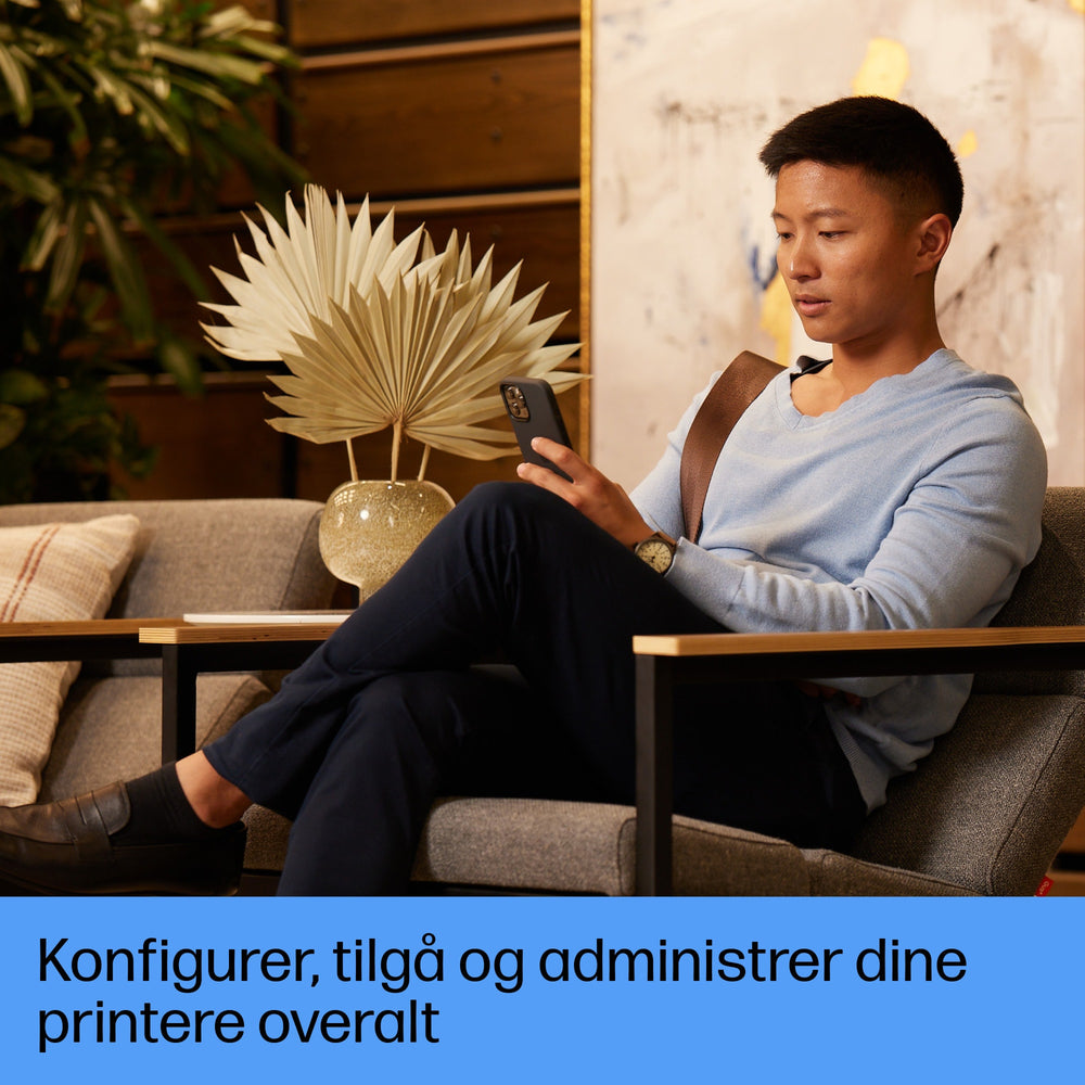 Trådløs; Print fra telefon eller tablet; 2-sidet udskrivning; Fax|Print, kopiering, scanning, fax|Sort (normal, A4): Op til 33 sider/min.; Sort (dupleks, A4): Op til 20 billeder/min.|Op til 1200 x 1200 dpi