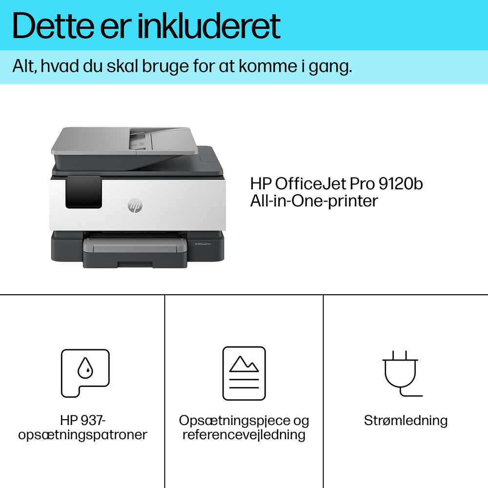 HP OfficeJet Pro 9120b Trådløst All-in-One Farve Printer, Tosidet print; Kopimaskine, scanner