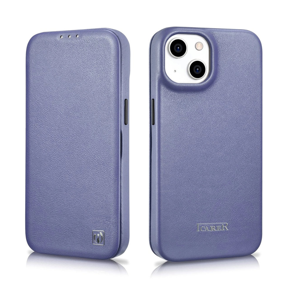 iCarer CE Premium læder Folio Case iPhone 14 Plus Magnetisk Flip læder Folio Case MagSafe Light Purple (WMI14220715-LP)