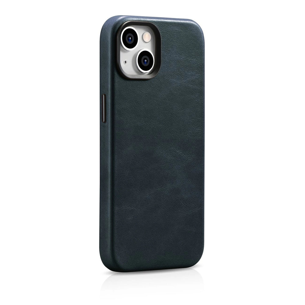 iCarer Oil Wax Premium Ledder Case iPhone 14 Plus Magnetisk Ledder Case med MagSafe mørkblå (WMI14220703-BU) .