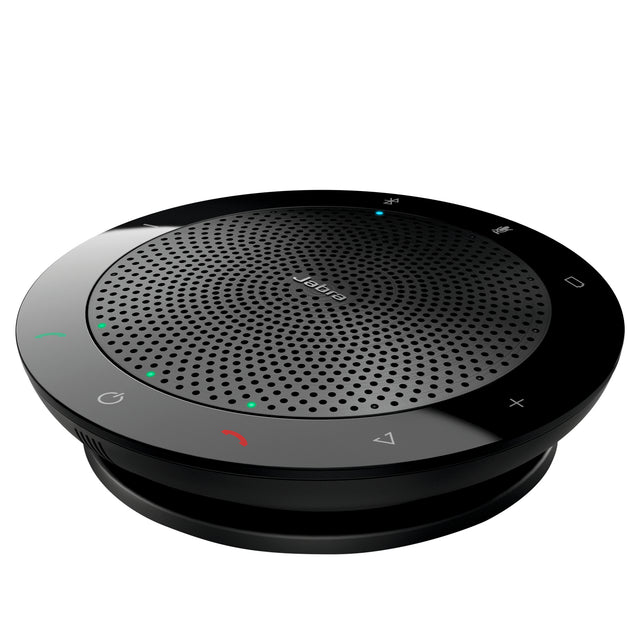 Plug-and-play functionality allows for easy connectivity to all PCs via integrated USB cable. With Bluetooth Class 1 connectivity you have a wireless range of up to 100 meters to tablets, mobile phones, and headsets.|Up to 15 hours of talk time on a single charge.|Hear and be heard with a 360-degree omni-directional microphone that picks up sounds from any angle.|HD Voice provides crystal clear sound without echoes or distortions – even at max volume.|Jabra Link 360 USB adapter for easy Bluetooth connection and call control integration with your softphone system.