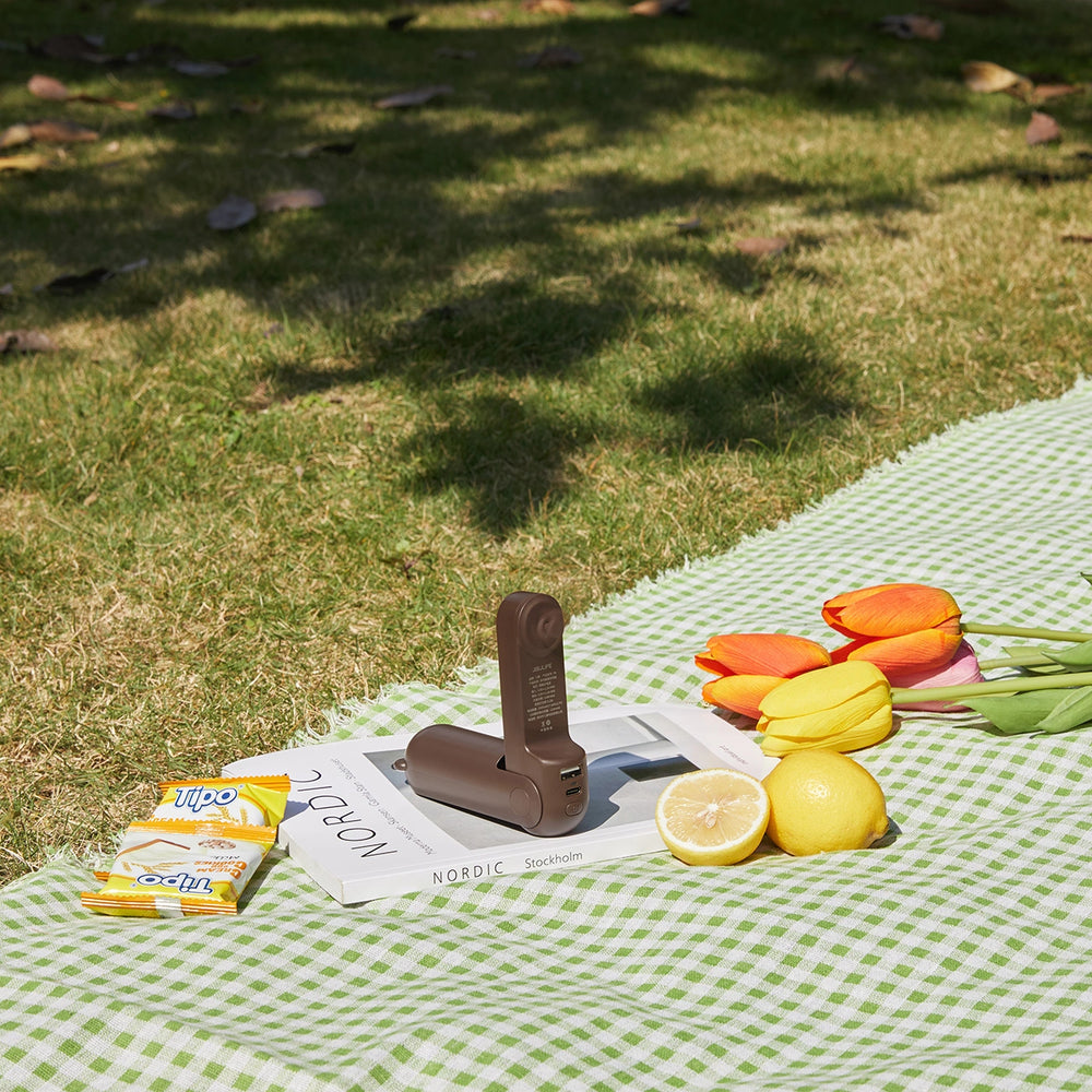 The Jisulife Life8 Plus is an upgraded version of the popular Life8 model, offering even greater performance and versatility. This foldable, portable 3-in-1 fan combines cooling, LED flashlight, and power bank functions. Thanks to a larger 4500 mAh battery, it operates for up to 46 hours on a single charge. It features three airflow settings and a more focused airflow. The brown housing gives it a sleek look that complements both urban and outdoor settings.