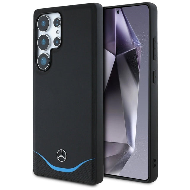 Mercedes læder kontrastblå horisontal kurve MagSafe Case til Samsung Galaxy S25 Ultra - sort .