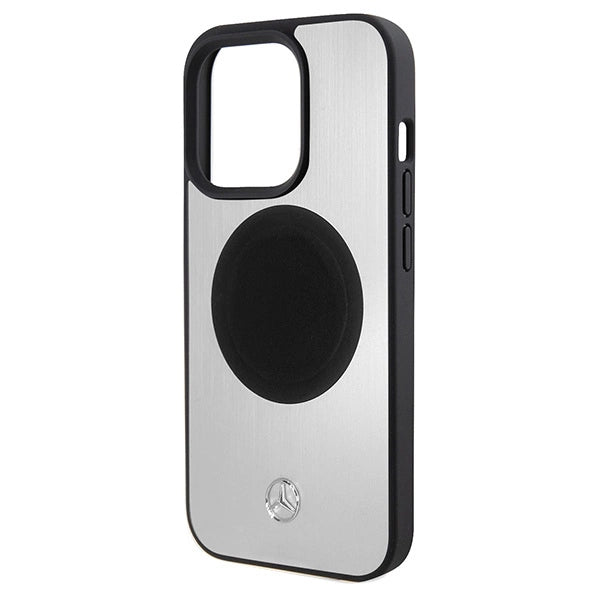 Mercedes læder og Alu MagSafe-foder for iPhone 15 Pro - sølv