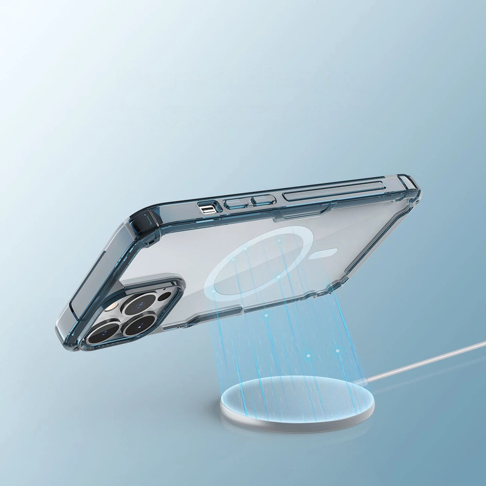 Damage-resistant case with MagSafe. Made of TPU and PC, it provides full protection against scratches and cracks. The case also has increased impact resistance thanks to the use of airbags in the corners. The case does not "collect" fingerprints and grease stains, nor does it turn yellow over time.