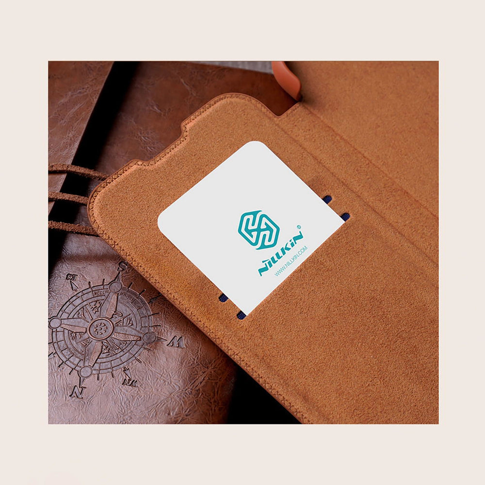 The Nillkin Qin Leather Pro Case has a natural leather texture - it has a very elegant, classic look . The cover with a flap prevents your phone from getting scratched and dirty . It has a sliding lens cover that protects the camera and your privacy . Precise cutouts for the charging port, speakers and buttons enable convenient use.