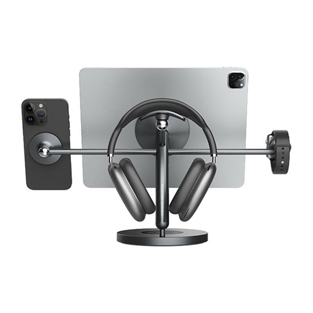 The Nillkin SnapBranch Modular all-in-one holder is a versatile stand that organizes and integrates all your mobile devices in one place. Designed for tablets, smartphones, watches and headphones, it offers a practical solution for organizing your workspace. Its minimalist gray design fits perfectly into any desk while providing full functionality. The set includes various modules that allow easy integration of different devices, increasing the convenience of daily use.