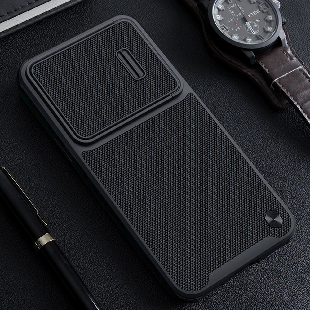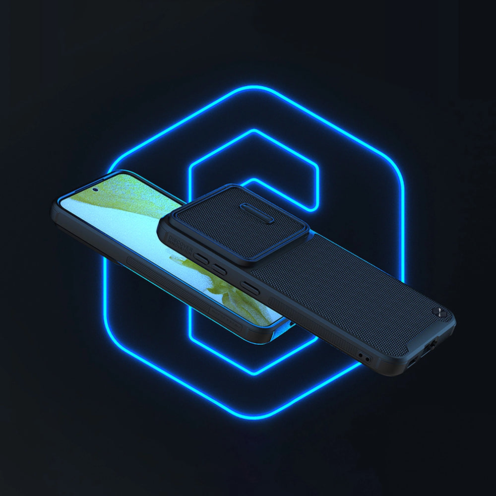 The Nillkin Textured S Case is made of high-quality materials. The unusual back panel of the cover has a pleasant-to-touch nylon fiber coating. Not only does it provide an interesting finish and design, but it is also comfortable and prevents the device from slipping out of your hand. The cover is tailored to the Samsung Galaxy S23+ and perfectly protects it against damage caused by falls or scratches (e.g. by keys carried in a pocket). The case has a sliding cover for the rear camera. Thanks to it, the camera glass is protected against scratches. There is also an additional advantage for people who value the privacy and security of their data. The covered camera prevents access to video recording if someone gains remote access to the phone and turns on the view from the main camera. Raised edges around the screen protect it from scratches when it is placed on a flat surface.