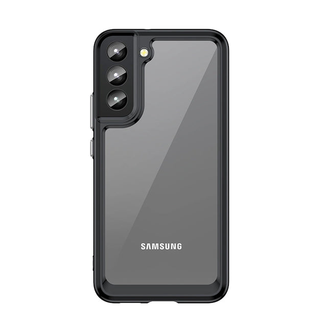 - A hybrid case with a rigid back and a flexible frame.
