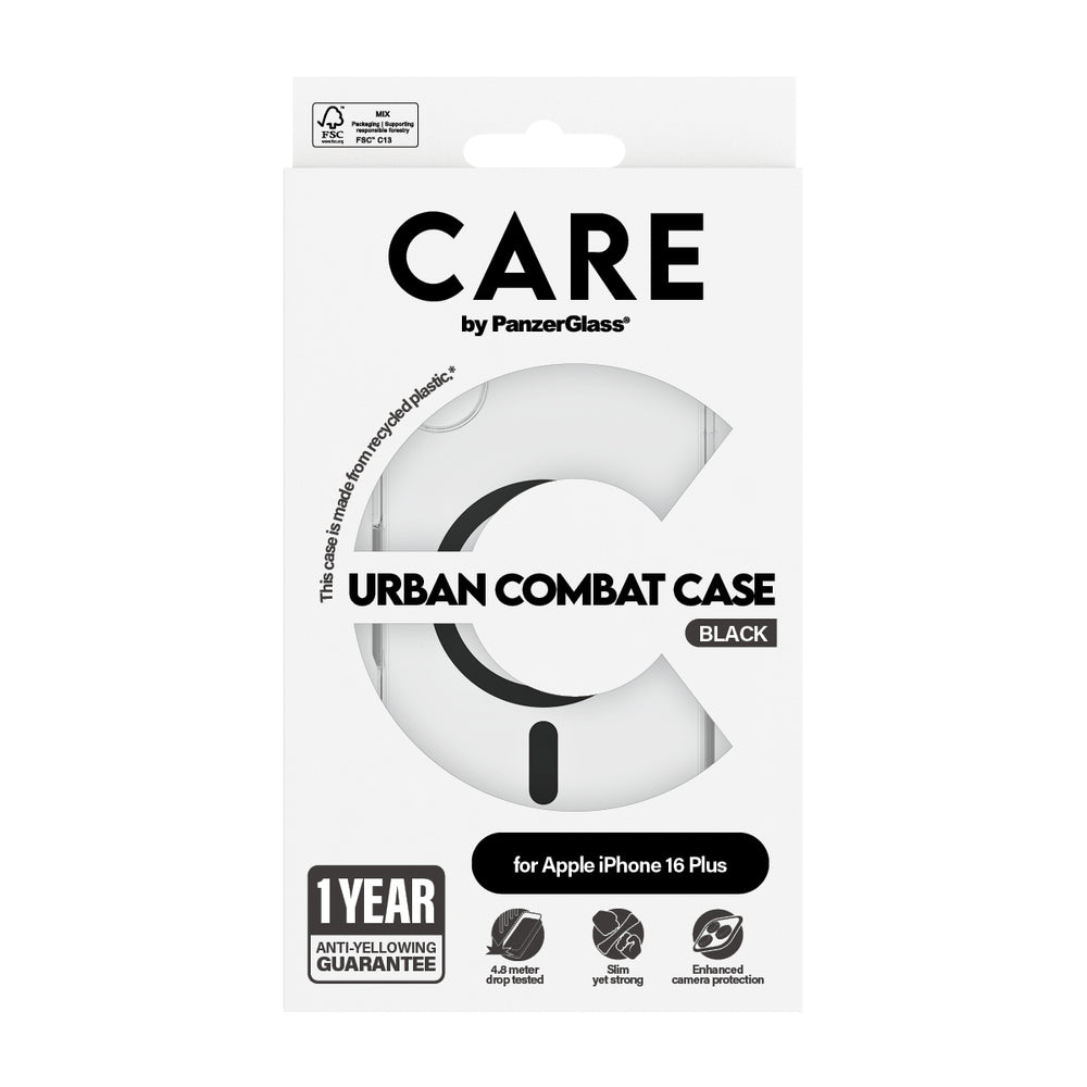 PanzerGlass CARE by ® Flagship Case Transparent Urban Combat m. Sort MagSafe iPhone 16 Plus .