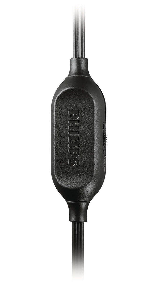 - Lang 6 meter ledning og lydstyrke justering på ledningen