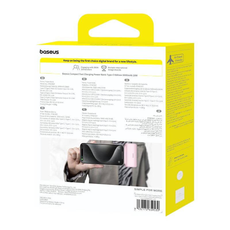 Powerbank Baseus Compact USB-C 5000mAh, 20W (rosa)