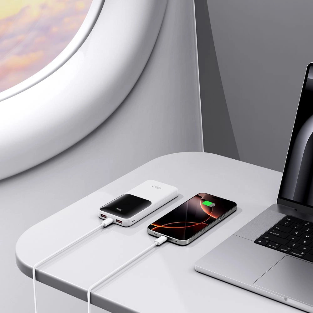 The compact size and lightweight design make the power bank ideal for both travel and everyday use.