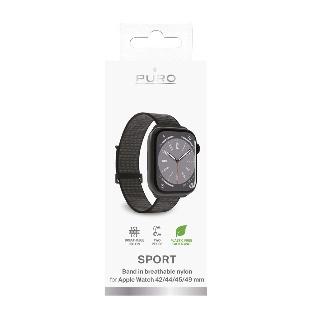 Puro Sport Nylon Strap til Apple Watch 42 / 44 / 45 / 49 mm - sort