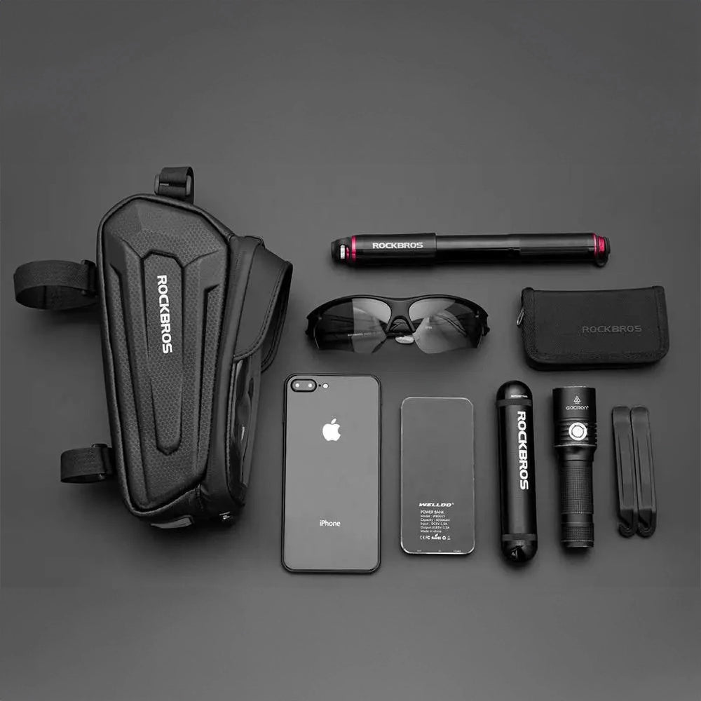 Rockbros B68 cykeltaske til pansret ramme med telefonlomme og dække 1,7l - sort