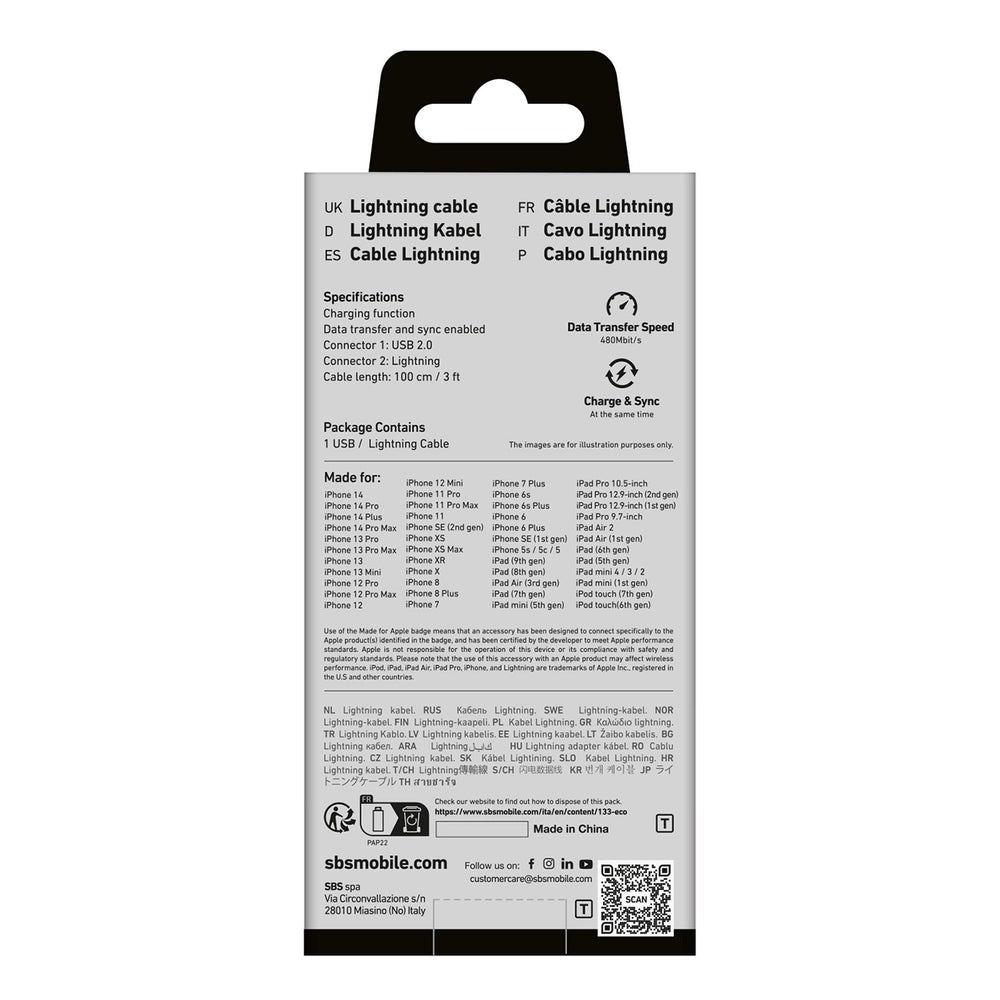 SBS TECABLEUSBIP589W USB-A - Lightning Cable - White