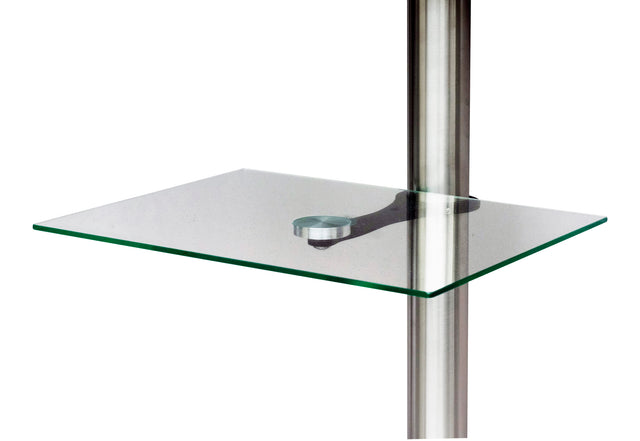 Hylde til Sinox StandView TV stand i glas. Den er justerbar og kan flyttes op og ned på standen. Mål: B: 40cm. D: 30cm