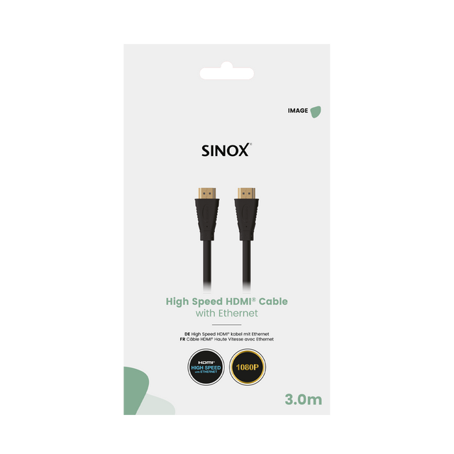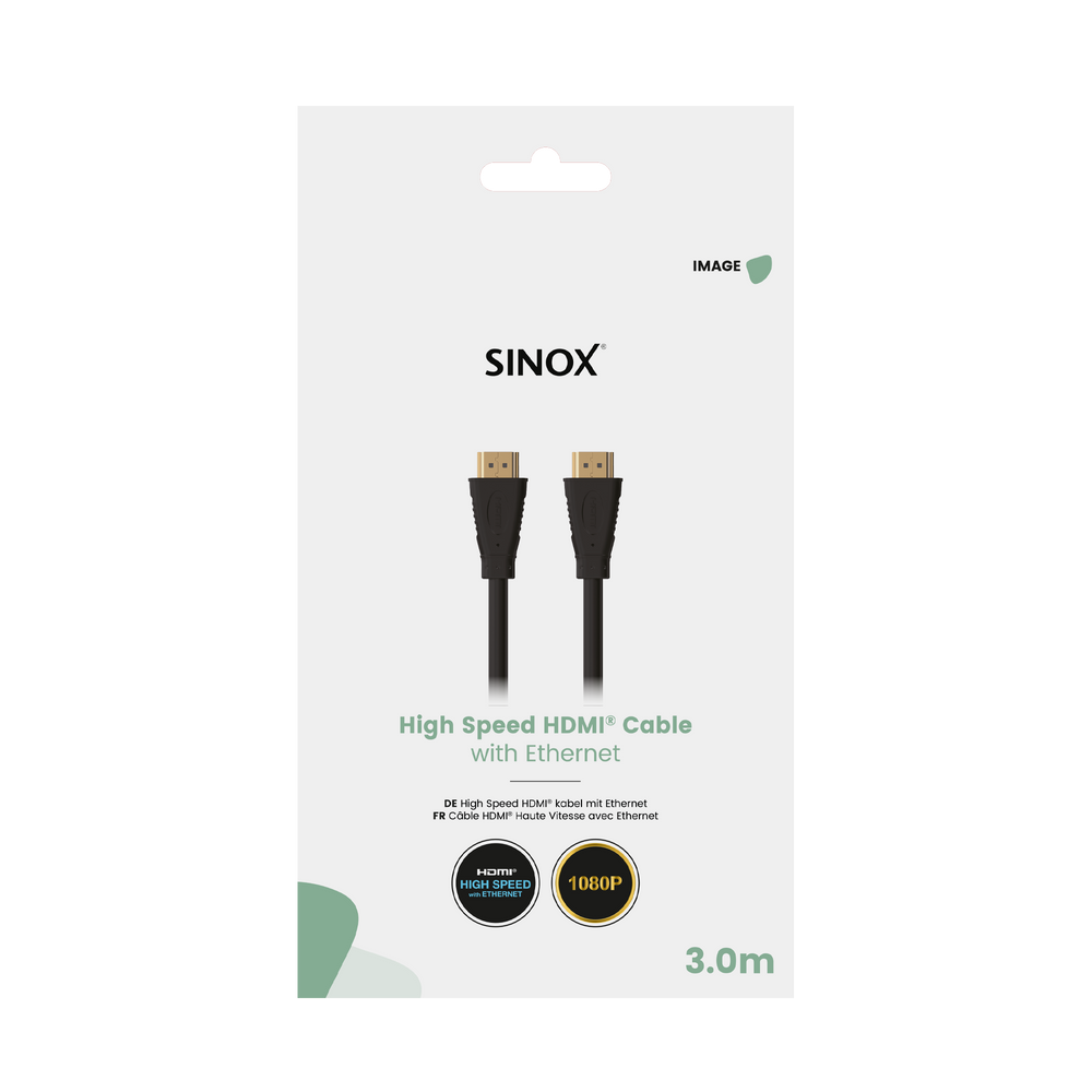 Sinox HDMI™ 4K kabel kan bruges til at overføre et digital audio- eller videosignal fra fx spillekonsol, DVD- og Blu-ray afspiller til TV. Høj hastighed 4K30Hz