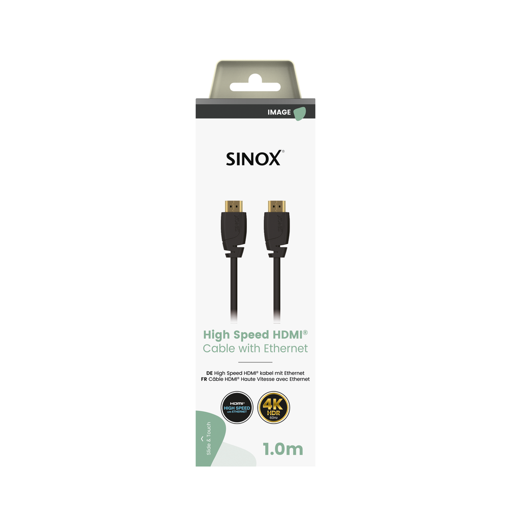 Sinox HDMI™ 4K kabel kan bruges til at overføre et digital audio- eller videosignal fra fx spillekonsol, DVD- og Blu-ray afspiller til TV. High Speed 4K60Hz