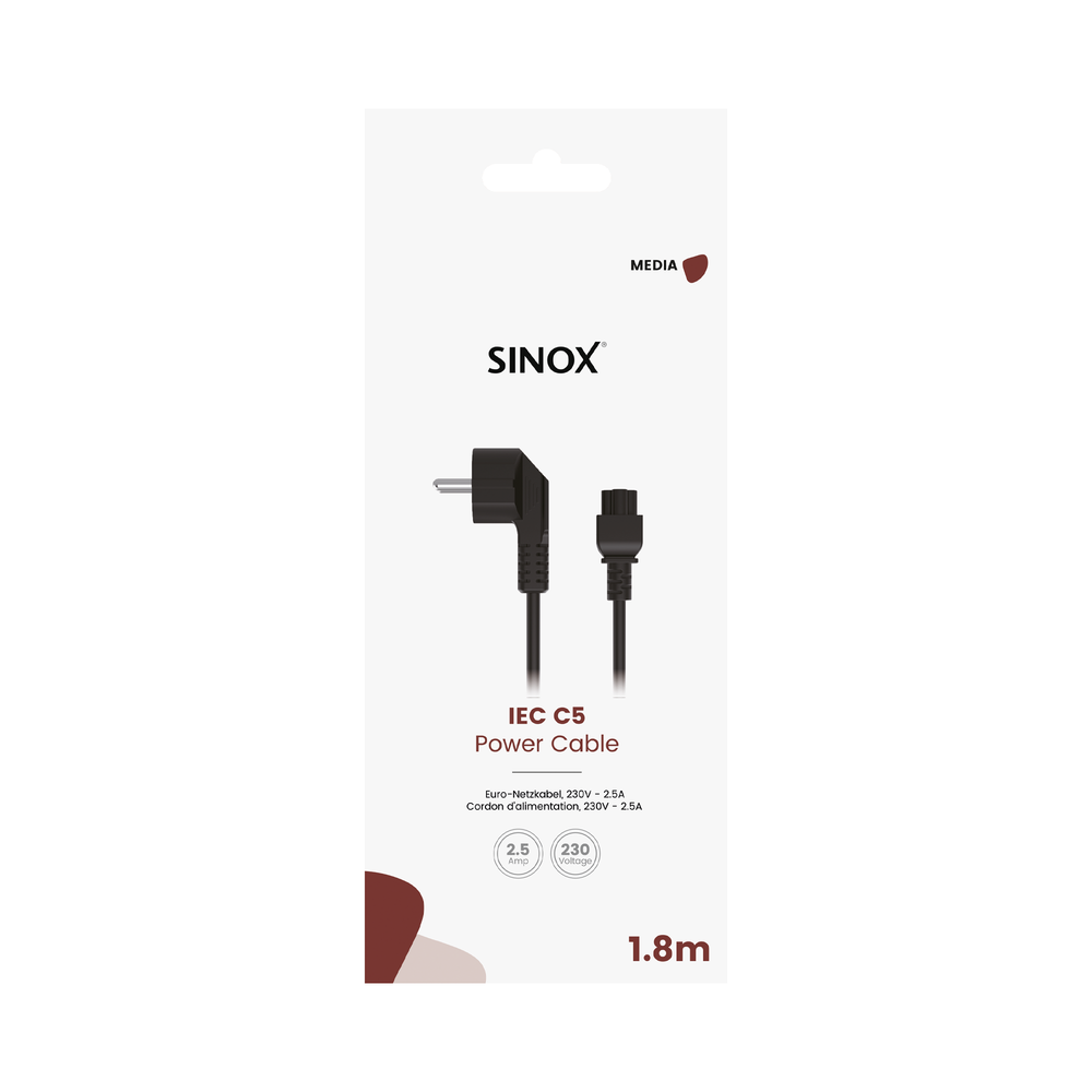 Strømkabel til erstatning for det medfølgende kabel (IEC C5). 2,5 amp