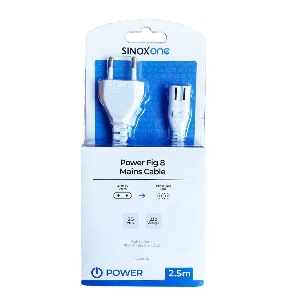 Sinox One strømkabel fra almindeligt vægudtag til 8-tals strømstik. 2.5amp 230V. 2,5 amp