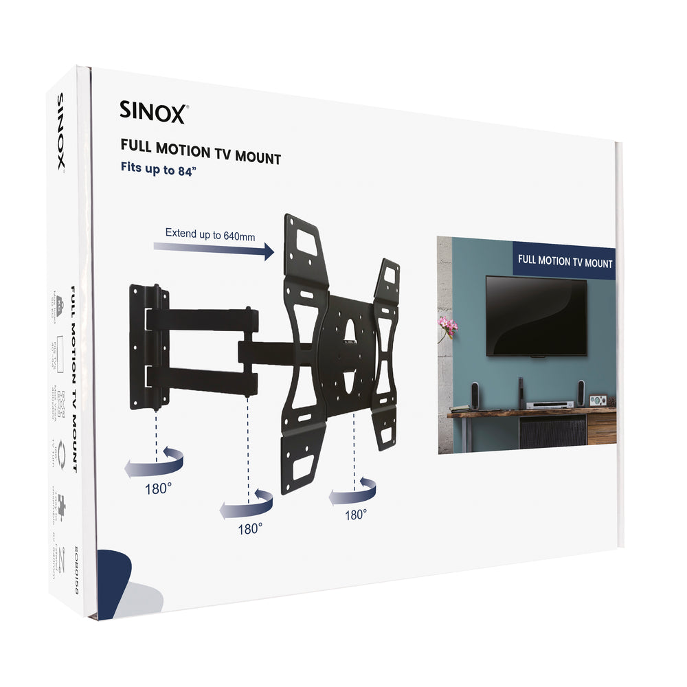 Sinox One TV vægbeslag med lang drejearm. Hvis du har behov for at indstille din TV-skærm på mange forskellige måder, så er dette vægbeslag den optimale løsning. Max vægt: 50 kg