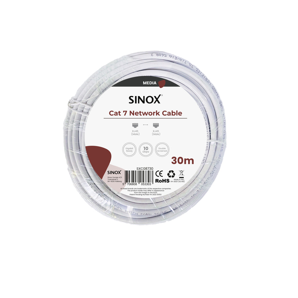 Sinox PRO S-FTP Cat7 netværkskabel. 30m. Hvid