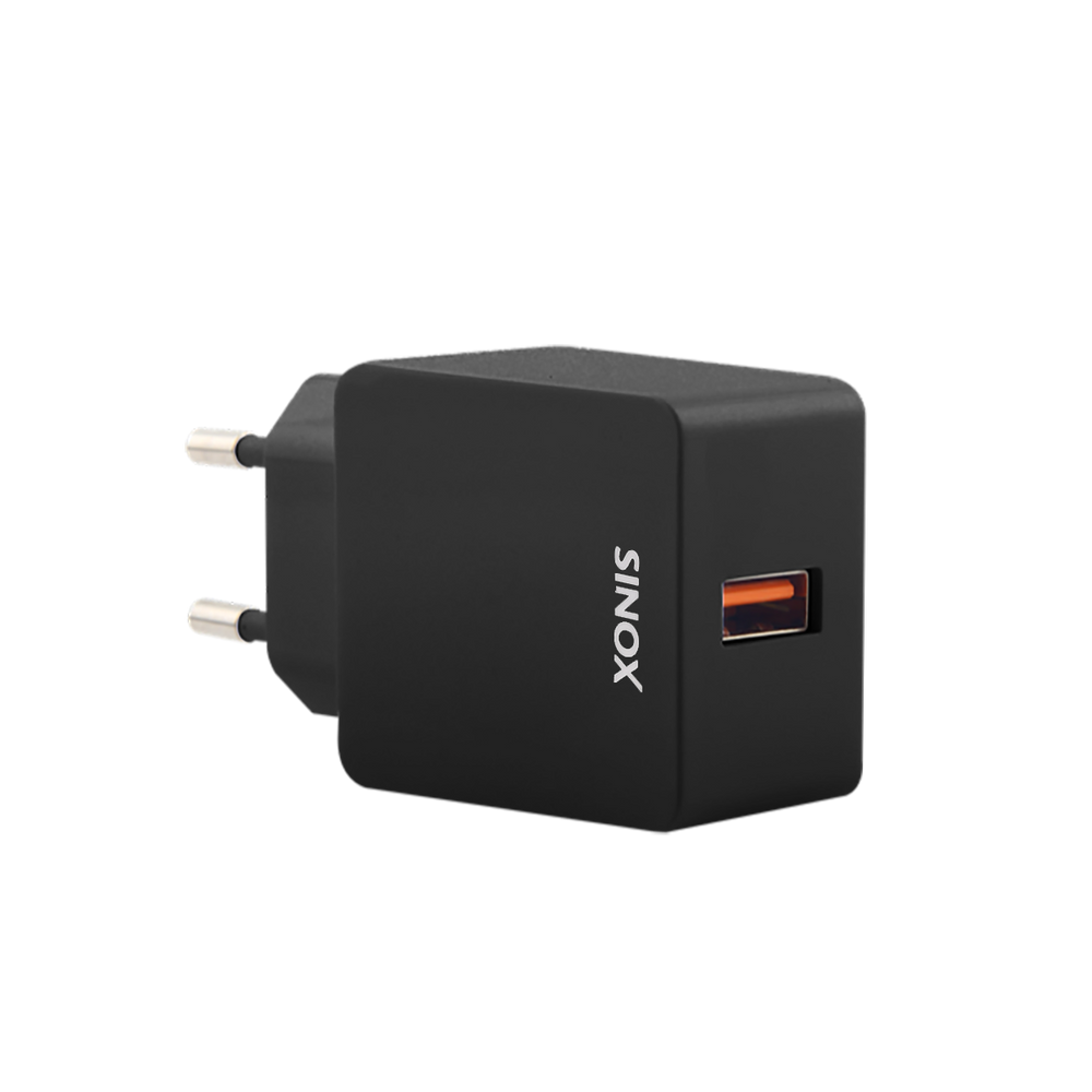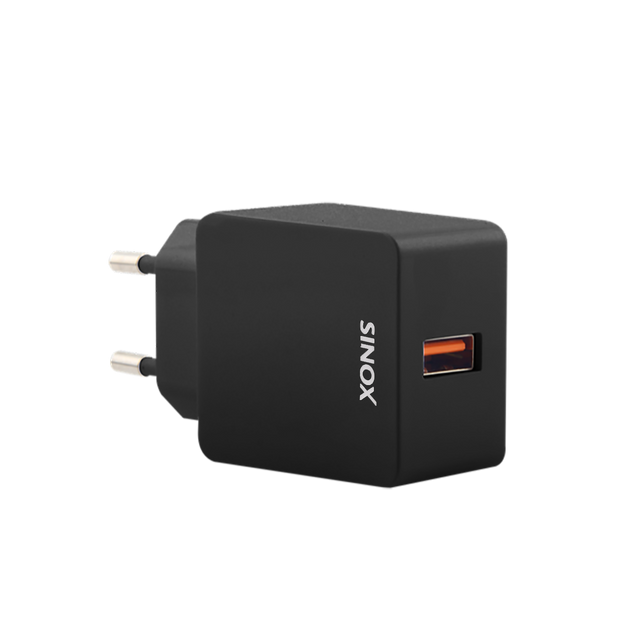 Sinox QC3.0 230V USB A oplader. 3,0A. Sort .