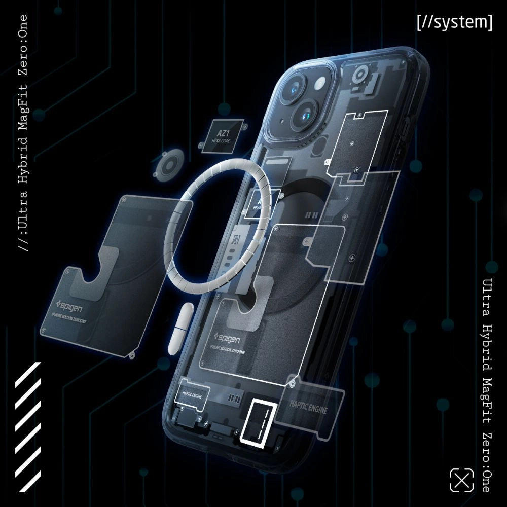 Spigen Ultra Hybrid Mag Case med MagSafe til iPhone 15 Plus - mørkgrå (Zero One mønster)