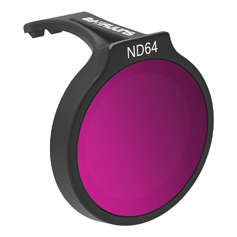 The ND64 filter is the most powerful filter in the kit, reducing light by six apertures. It is ideal for recording in very intense sunlight. With it, you will avoid unwanted visual effects and gain smooth motion in your recordings.