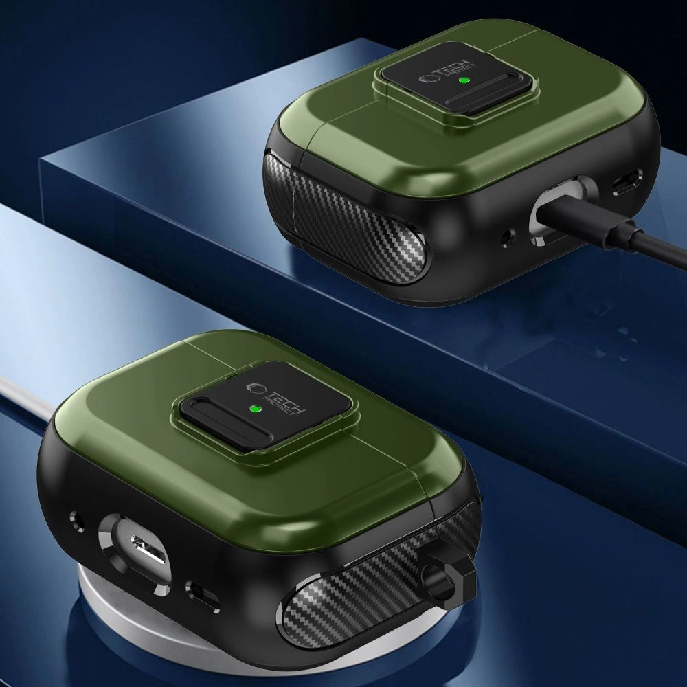 Tech-Protect Defender Hook MagSafe Case med Carabiner til Apple AirPods Pro 1 / 2 - Grøn