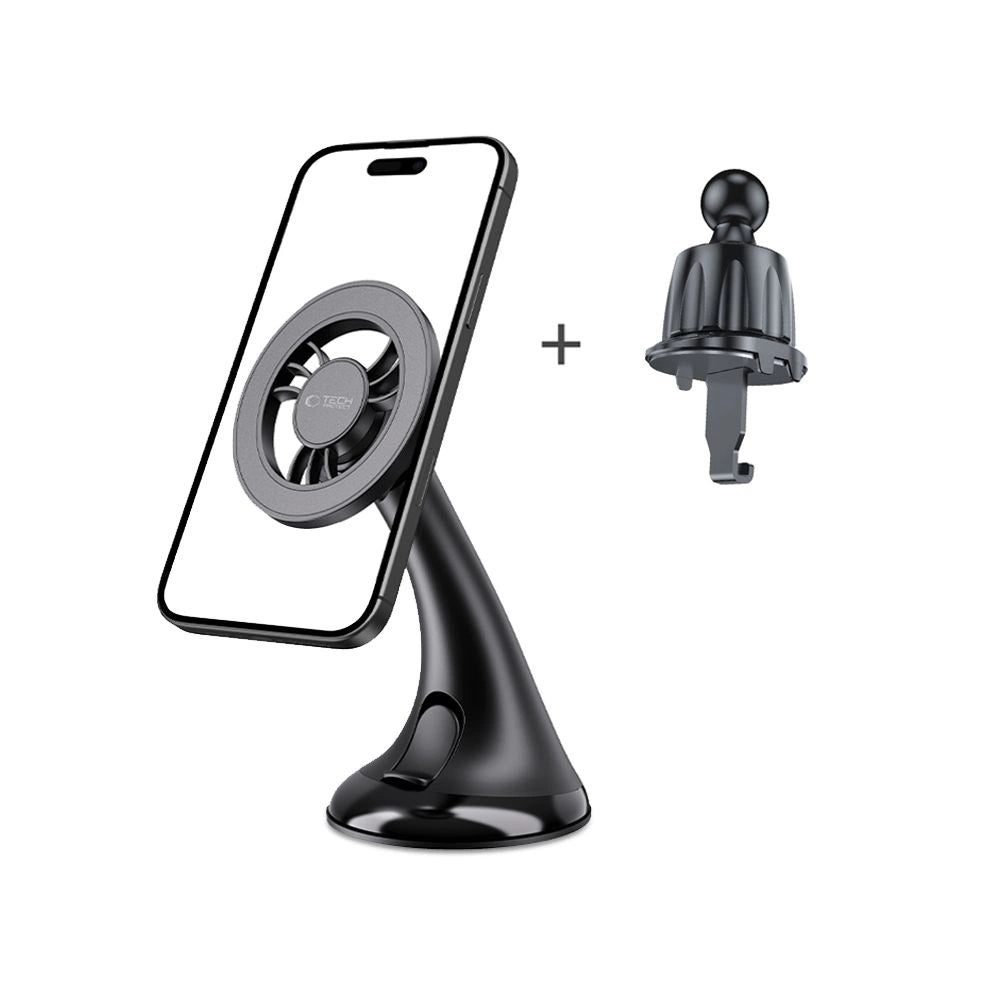 Car holder N56 from Tech-Protect equipped with an innovative Magsafe mounting system. Thanks to strong magnets, mounting and dismounting your smartphone becomes easy and quick, and a stable hold of the device while driving is ensured.