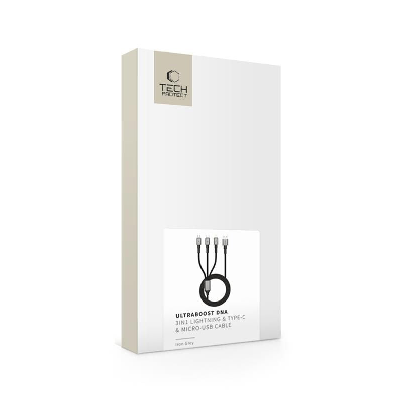 Tech-Protect UltraBoost DNA 3in1 USB-C / Micro-USB / Lightning kabel 120 cm - grå .