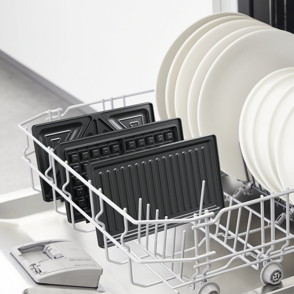 Tefal UltraCompact 3in1 SW383D10. Produktfarve: Sort, Rustfrit stål, Formfaktor: Firkant, Lågfunktioner: Hængslet låg. Strøm: 700 W. Bredde: 230 mm, Dybde: 230 mm, Højde: 90 mm. Pakkebredde: 160 mm, Pakkedybde: 262 mm, Pakkehøjde: 290 mm. Emballageindhold: UltraCompact 3in1, waffle maker, sandwich maker, contact grill