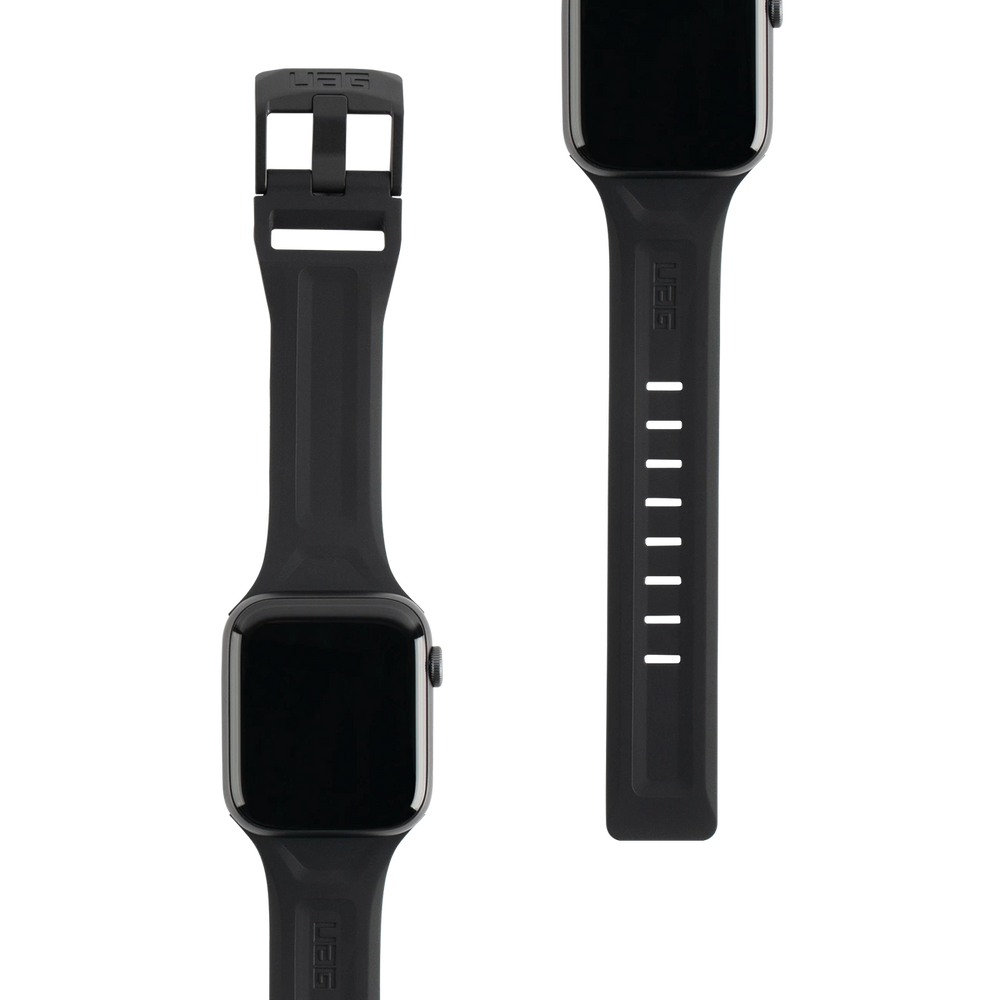 UAG Scout - Apple Watch Strap Special task strap. About Urban Armor Gear UAG products are designed in the USA by adventurers for adventurers. UAG accessories are imbued with the quintessence of adventure. We work hard, look for new, unusual inspirations and constantly push the boundaries of conventional ideas to create the highest quality products. For the demanding The collection of straps was created with active Apple Watch users and their daily sports adventures in mind. That is why Scout ensures full reliability even in the most difficult moments thanks to the combination of high-strength silicone with an antibacterial coating and a stainless steel clasp.