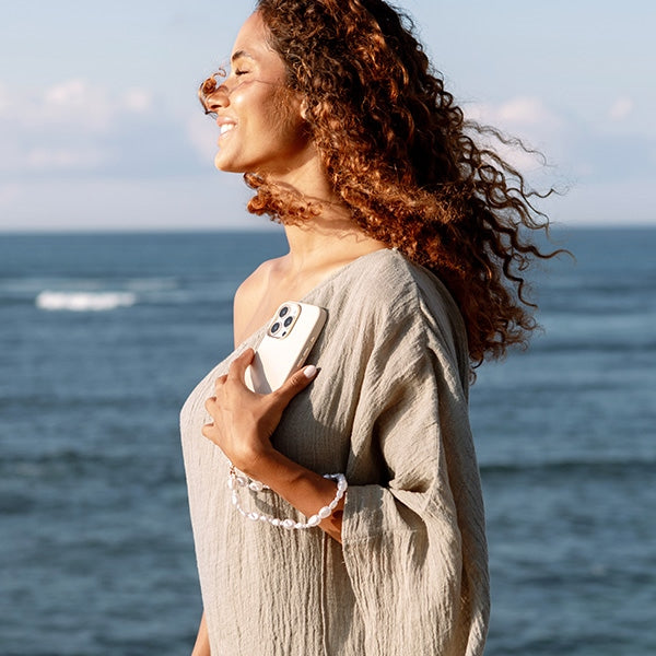 Obsługuje magnetyczne ładowanie bezprzewodowe i akcesoria. Zawiera pasującą kolorystycznie smycz.