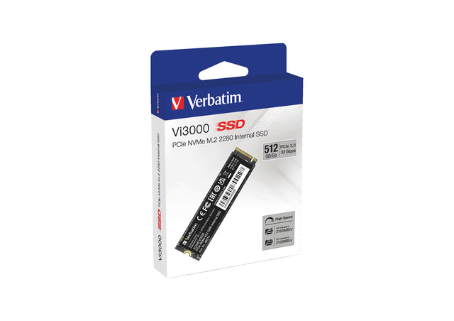 Verbatim Vi3000. SDD-kapacitet: 512 GB, SSD-formfaktor: M.2, Læsehastighed: 3100 MB/s, Skrivehastighed: 2100 MB/s, Komponent til: PC/Laptop