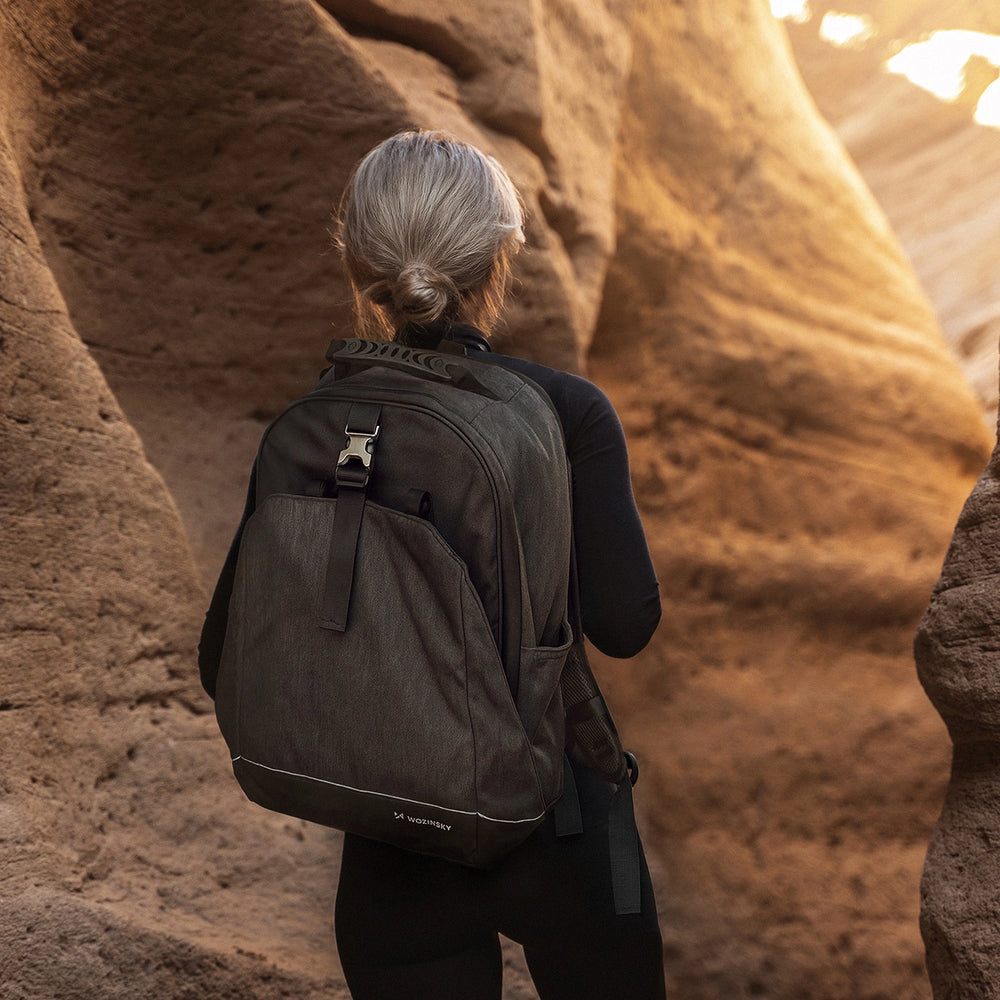 The minimalist, ergonomic shape of the Wozinsky bike backpack bag