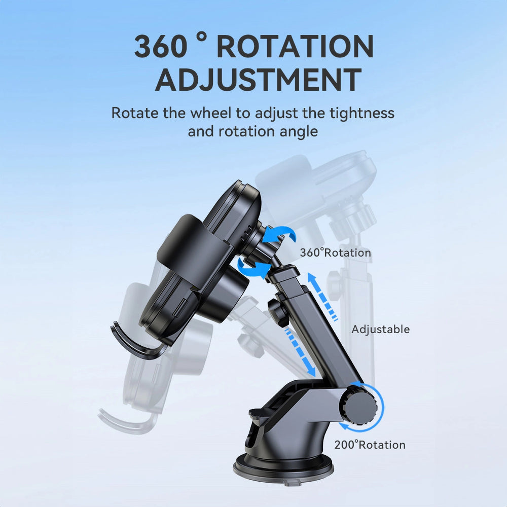 Thanks to the built-in 15W inductive charger, the Wozinsky WUMID car holder allows you to quickly charge your smartphone (4.5-6.5" diagonal) without the need for cables. The ergonomic design allows you to easily adjust the length of the holder arm, which guarantees a perfect fit for any vehicle. The strong suction cup ensures the stability and safety of the device, even during dynamic driving. Additionally, the intelligent temperature monitoring chip protects against overheating, ensuring the safety of both the phone and the charger.