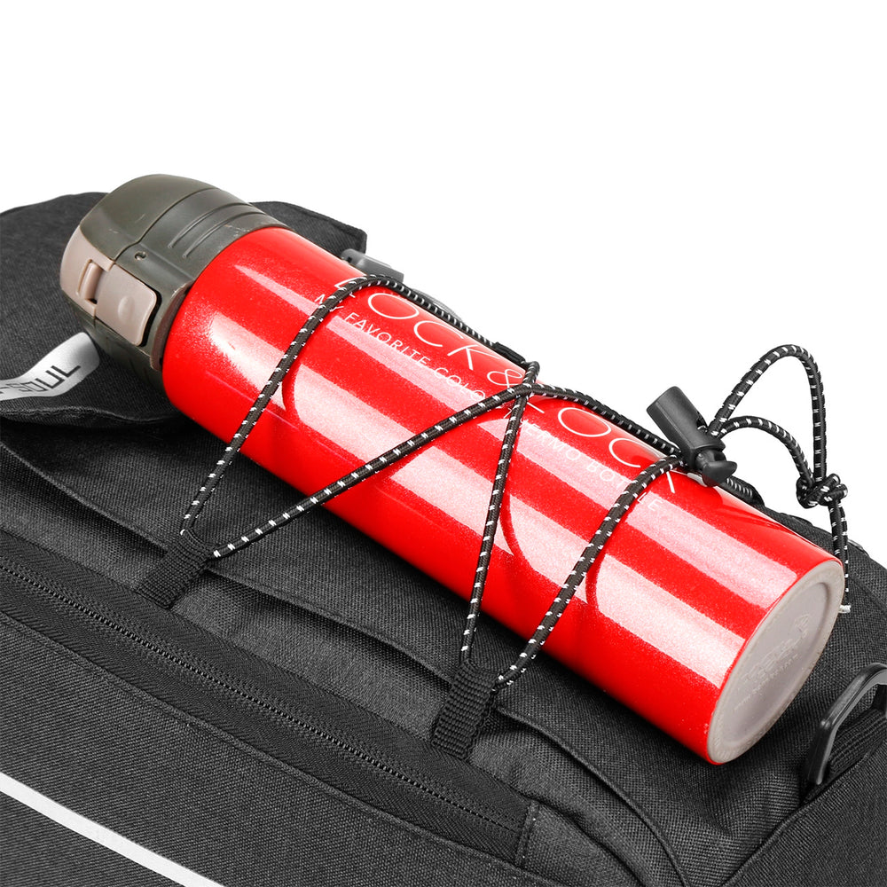 The elastic webbing on the outside of the bag is the perfect place for clothes that may require quick access. An additional pocket with a flap and a special place for a water bottle ensure that everything you need is at hand. The possibility of attaching a rear light is another plus that increases your safety on the road.