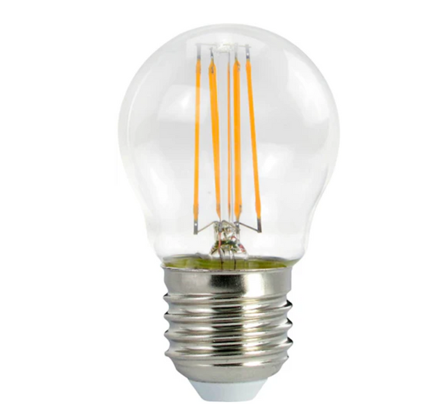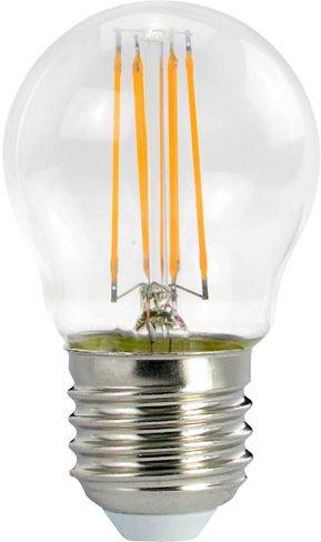 Elvita P45 LED-lampe er med filament og E27 fatning. Den har en levetid på 15 000 timer.