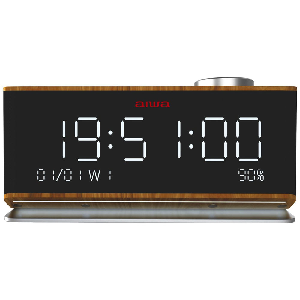 AIWA CR-90BT har indbygget genopladeligt batteri, så man kan tage clock radioen med. Højttaleren har en klar lyd og FM radioen er nem at bruge med op til 15 preset til at gemme radiostationer.