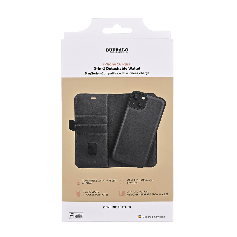 BUFFALO 2in1 Leather 3 card MagSeries iPhone 16 Plus Black .