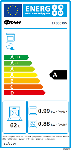 - 62 liter ovnrum / 4 kogezoner
