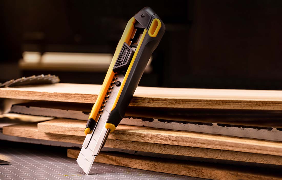 Kutteren er lavet af ABS og TPE materialer, hvilket gør den holdbar. Dets ergonomiske design giver et sikkert greb og stabilitet, så du kan være sikker på, at værktøjet ikke glider ud af din hånd. Plastknappen giver dig mulighed for bekvemt at justere længden af bladet og låse det. Det anbefales at skjule bladet, når du ikke bruger kniven for at forhindre snit.