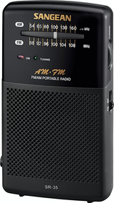 Denne radio med indbygget højttaler og 3,5 mm hovedtelefonstik. SR35 er en ven for alle, der kan lide at lytte til radio i alle mulige miljøer og sammenhænge. Stor lyd! Sangean SR35 har en meget stor lyd via den indbyggede højttaler. Derudover med særdeles god radiodel både på FM og AM. 2-bånds AM/FM håndledsrem medfølger giver god bærestøtte. SR 35 kombinerer god lyd, god modtagelse med et praktisk format. Og dette til en overkommelig forbrugerpris. At det er en indbygget højttaler giver SR35 flere muligheder