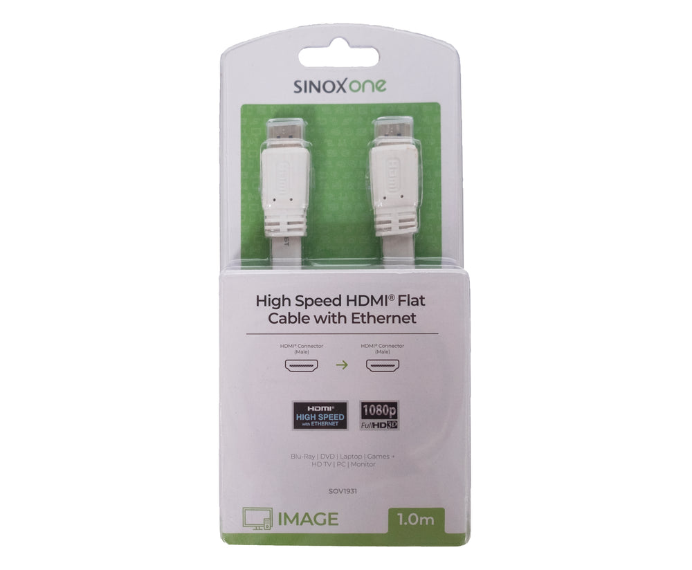 Sinox One HDMI™ Flat slim kabel. 1m. Hvid .