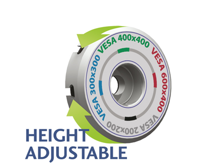 - VESA størrelse: Fra 75x75 til 600x400